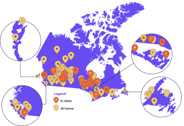 We provide at-home tutoring to children in Alberta, British Columbia, Manitoba, New Brunswick, Newfoundland and Labrador, the Northwest Territories, Ontario, Saskatchewan, and the Yukon.