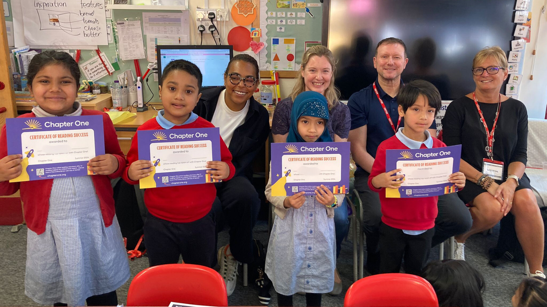 Year-End celebrations take place after May Half-Term, either in-person at school where possible or virtually. It's a chance for the volunteer and the child to celebrate their year of reading together, and the children are presented with an activity book and a Certificate of Reading Success. Both the children and the volunteers really look forward to these events, which are facilitated by the Chapter One Programme Manager alongside the class teacher.